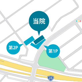 お車でご来院される方には、敷地内に第1駐車場、当院裏側の斜面の上に、第2駐車場を完備しています。※ご注意ください第2駐車場へは正面入口(第1駐車場)からは通行できません。道順などの詳細はスタッフにお尋ねください。